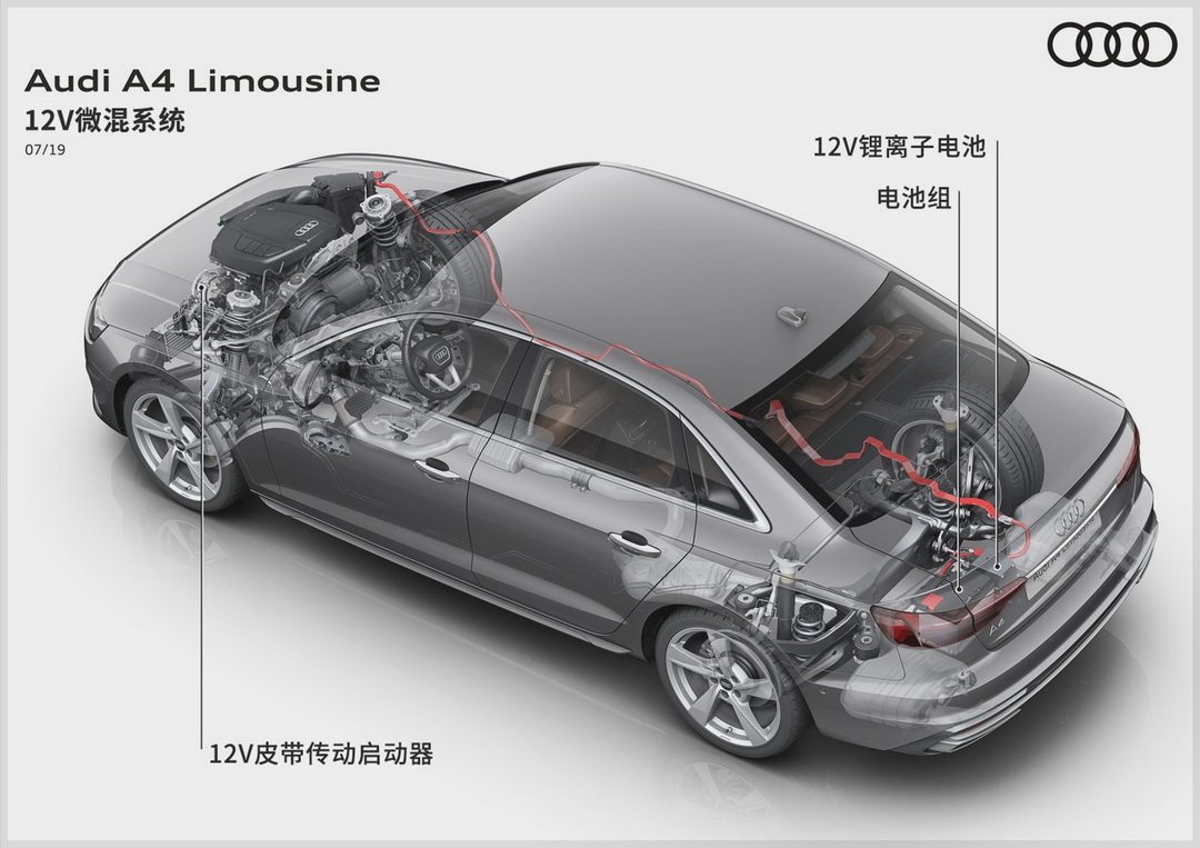 除此之外,中改A4L的动力系统都加入了12V微混系统,这套系统能够在起步、高速巡航、自动启停开启后为发动机,车内的电器提供一定的帮助,从而达到减少油耗的作用。能减少多少呢?每百公里减少0.3L油耗。
