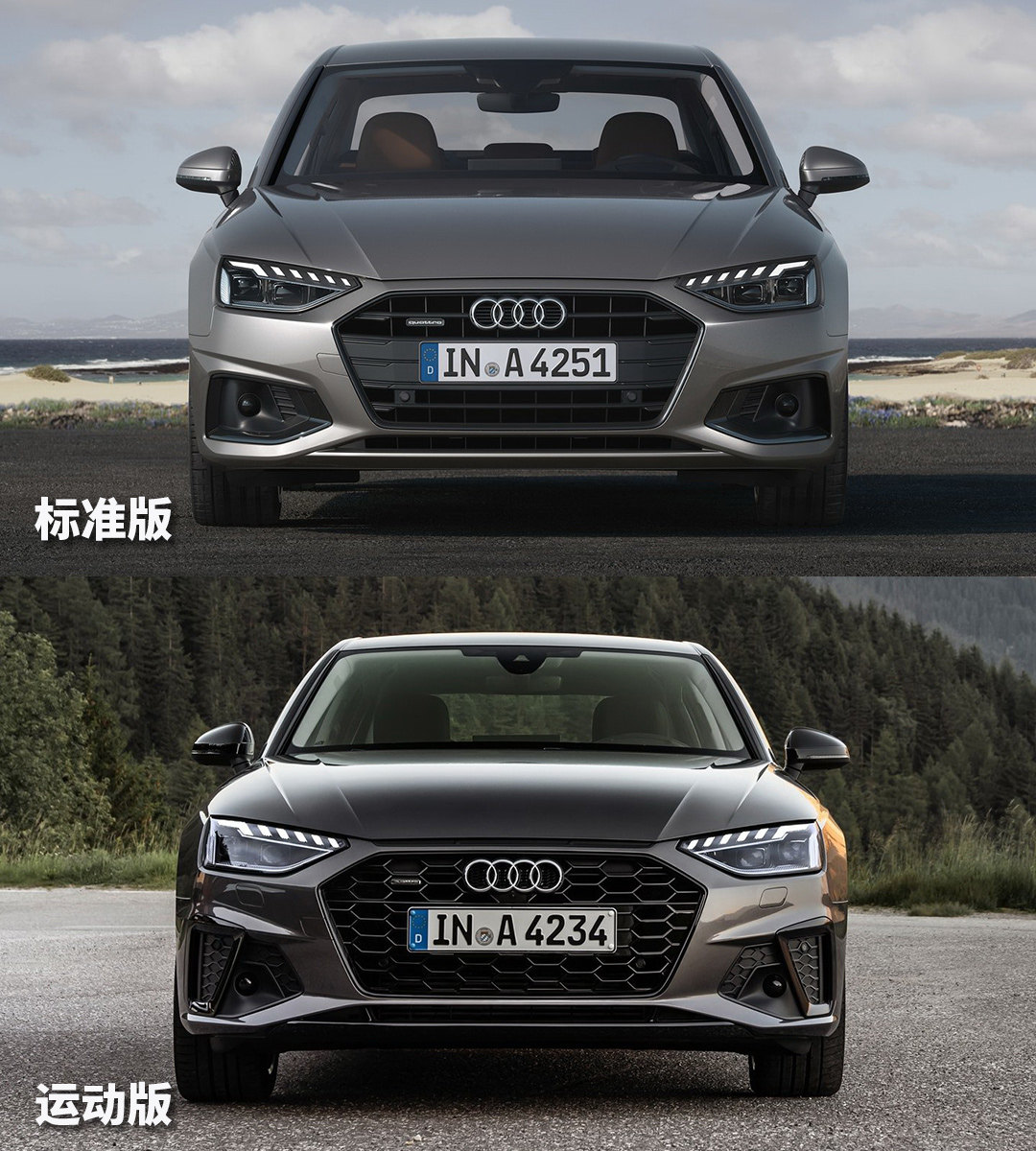 新的奥迪A4L用了奥迪最新的设计语言。奥迪A4L在外形上的改动其实还真不小,提供了运动S-line和标准Advanced版两套外观设计,格栅、前后包围进行了设计上的优化。