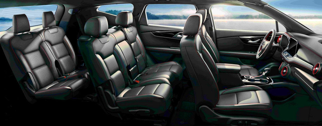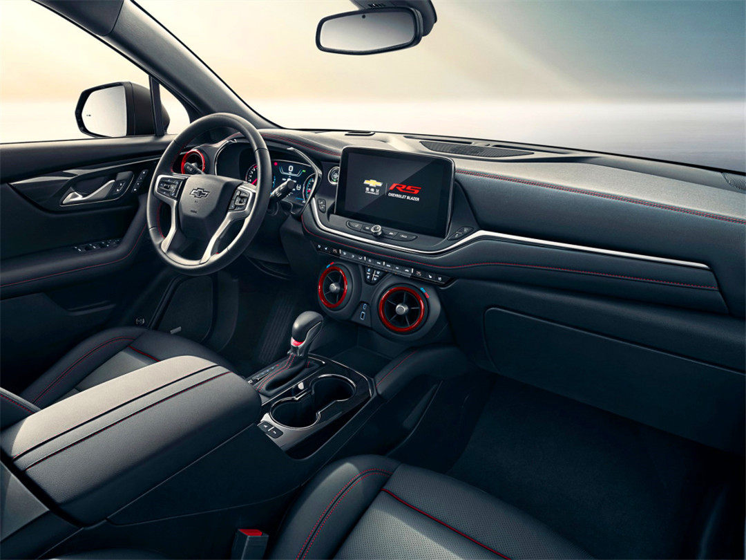 其次内饰设计上,开拓者也融入了很多与科迈罗相似的跑车化设计,比如圆形的空调出风口就位于中控台底部,并且少有地在中大型SUV上采用运动感很强的红色缝线,这若出现在居家风的汉兰达或商务风的途昂上,简直不可想象,但在开拓者上就很搭。