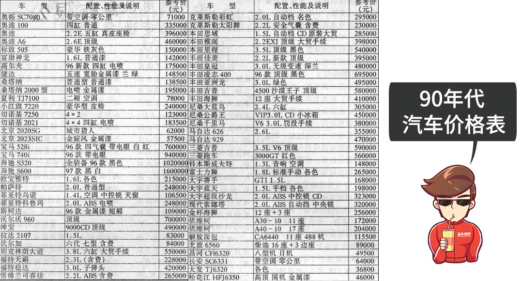 以时刻触动国人神经的房价为参考标准,根据中国房价行情网站公布的二手房数据显示,2019年四大一线城市,深圳平均房价超过6.5万/平米、北京平均房价超过6.3万/平米、上海平均房价超过5.4万/平米、广州平均房价超过3.5万/平米。但如果将时光倒流回90年代,上述的价格都会压低至1万大关以内,而一款售价高达10多万的捷达,其价值几乎等同于当时北京市内的一套房。