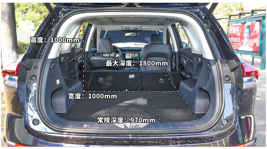 除了后排空间之外,另一体现空间的地方就在于后备厢。拥有1800mm最大进深、1000mm高度、1000mm宽度的长安欧尚X7,拥有同级别中较大的后备厢空间,并且后备厢盖板之下有6个储物格,进一步拓展了储物能力。