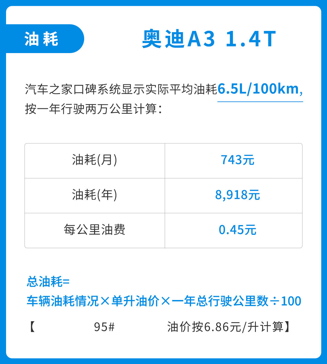 仔细一算,A3的油费还真的不算贵,并且还是加95#的价格,相比于大多数车型来说存在不少优势。