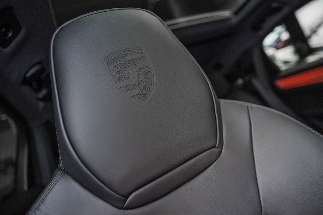 而中控扶手、座椅头枕等出都有保时捷盾徽压花,仪式感非常到位。
