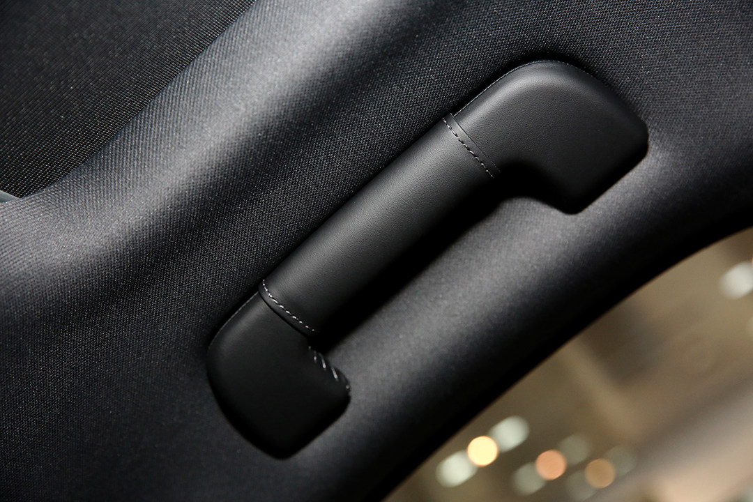 车内也是采用与车身同色的饰板,像是被一条熔岩橙色的色带围绕着;同时真皮材料贯穿车内:中控台、车顶拉手、把手;并且换挡杆也选装了Exclusive Design换挡杆,营造出十分豪华而且有活力的内饰氛围。
