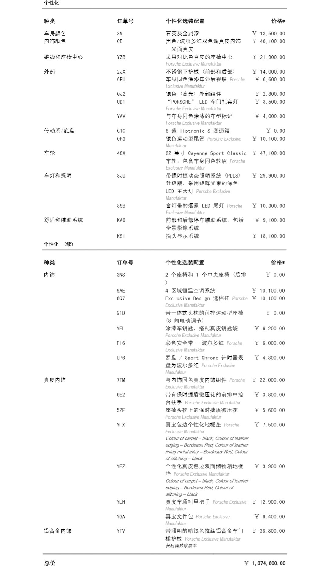 然后附上这款“激情澎湃”的选装清单,相当有意思,整套轻量化组件就要17.64万,前大灯接近3万,两个拉花6千4,选装总花费30万出头。但是这是三款车之中选装最便宜的。