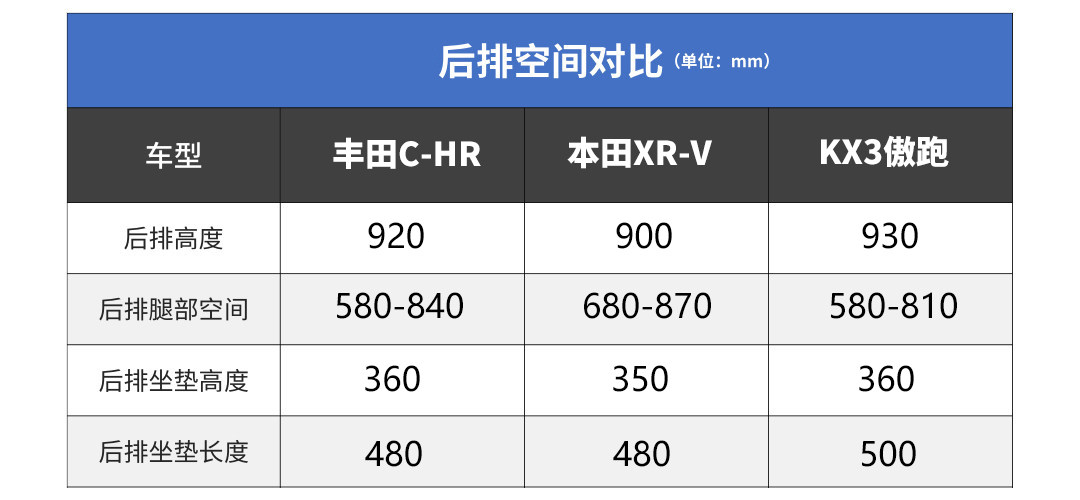 但当进入C-HR的后排,这后排空间着实惊艳到我,后排并没有非常紧凑,反而还有着十分充裕的腿部空间。后排580-840mm的腿部空间表现还算不错,笔者身高190cm,前排调好了自己舒服的坐姿后,后排腿部还有三指的距离,这样的后排空间水准基本满足一些三口或四口之家的用车需求。但后排座椅宽度则相对一般,1460mm的宽度坐三个成年人会略显拥挤。