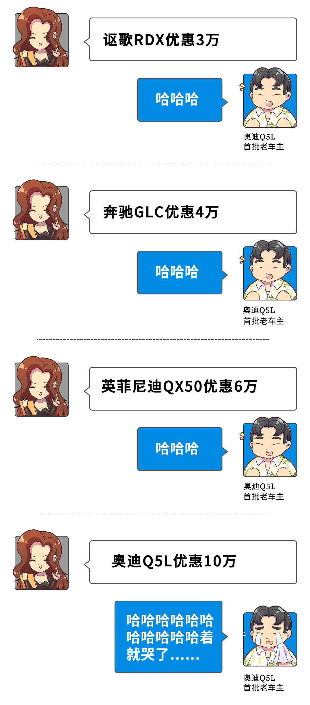 其实,优惠消息的到来,对已购买者是一件痛苦的事,更多的优惠往往能引起不舒适感,那不是优惠,而是间接“损失”的钱。手机这类快消品还好,但像汽车这类大件商品,当优惠来了,幅度少则几千,多则好几万啊!