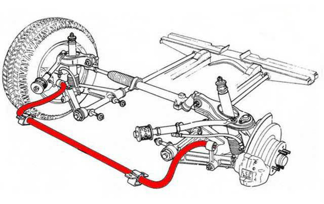防倾杆与左右两侧悬挂相连,本来两侧的独立悬挂是独立工作,如今通过防倾杆相连,将左右连接起来,假如单侧轮胎收到颠簸向上运动,该侧的防倾杆会随之向上运动,由于防倾杆连接了左右两侧的悬挂,所以会带动另一侧的车轮向上运动,但由于防倾杆具有一定的弹性,所以另一侧的运动幅度会相对遇到颠簸侧的小。