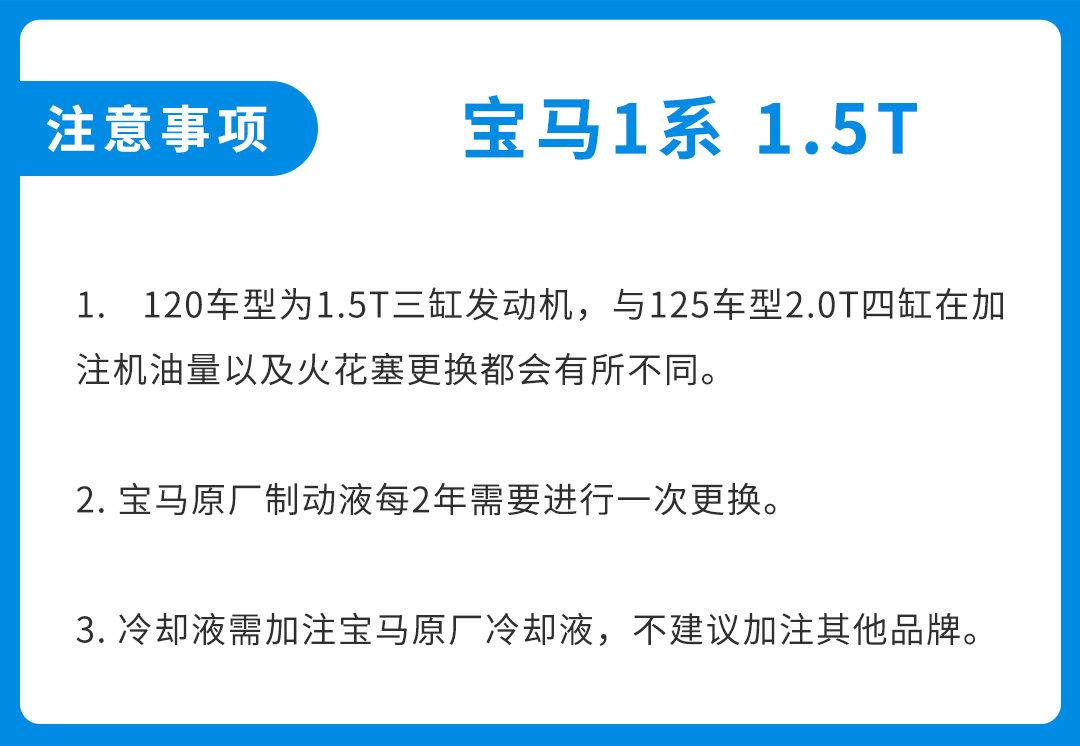 可能有的人会觉得120车型不是四缸的吗?其实宝马是在改款的时候做了些“小改变”,把原来的118车型变成了120,原来的120就变成了125,所以要记得三缸跟四缸在保养上是有区别的。