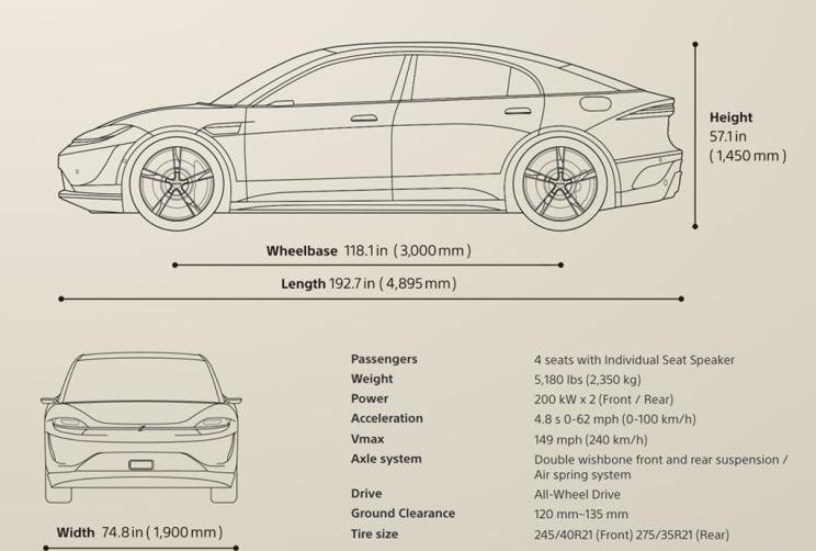 随后索尼在官方发布了Vision-S的动力信息,新车将采用前后双电机的布局,综合功率达200kW,而0-100km/h的加速成绩为4.8秒。