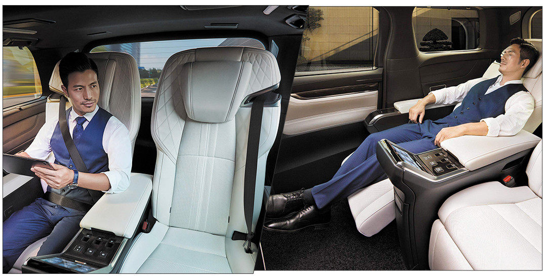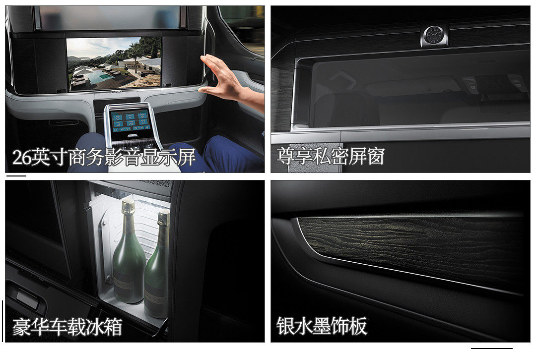 诸如银水墨饰板,山水笔墨与木纹纹理相得益彰;尊享私密屏窗,灵感源自中国传统屏风,区隔前后排独立空间;26英寸影音显示屏,集成Wi-Fi功能,可与智能手机、平板电脑等设备连接;以及容积为14L的车载冰箱、尊享丝柏主题香氛。这样的雷克萨斯LM简直就是移动的“奢华宫殿”!