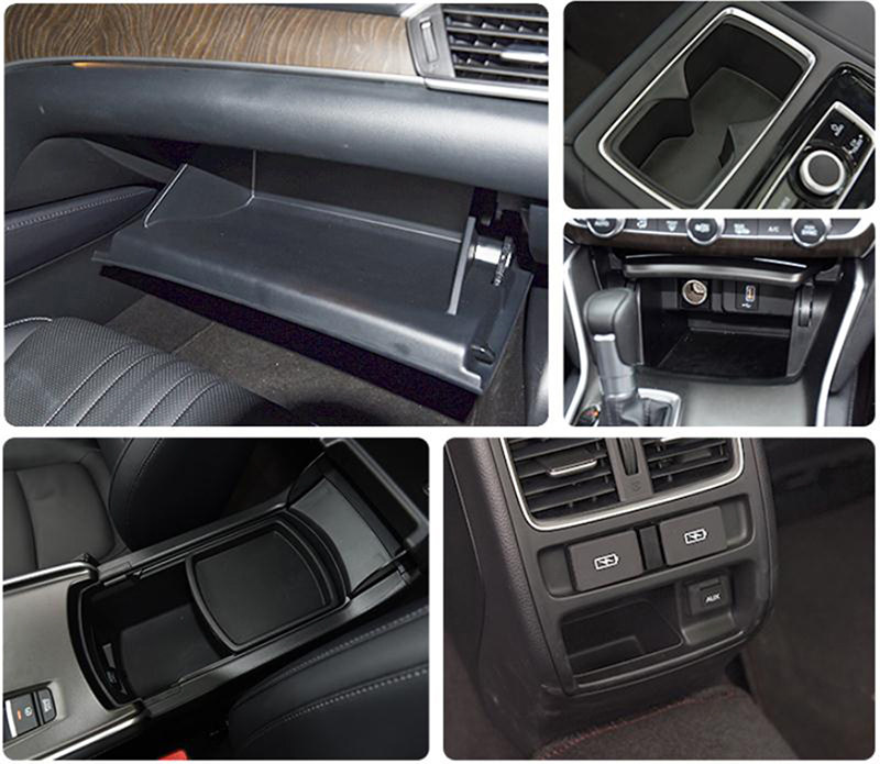 混动车型虽然拥有显著的油耗优势,但是对于本田来说,为了一块电池而牺牲掉重要的车内空间是不可接受的;为了提高雅阁的空间实用性,本田不仅在前后排设置了大量储物空间,让驾驶者和乘客可以非常方便地放置随身物品,更将电池组隐藏于后排座椅下方,使后排乘坐空间与尾厢空间免受影响,这也是本田作为车厢空间设计高手的实力体现。