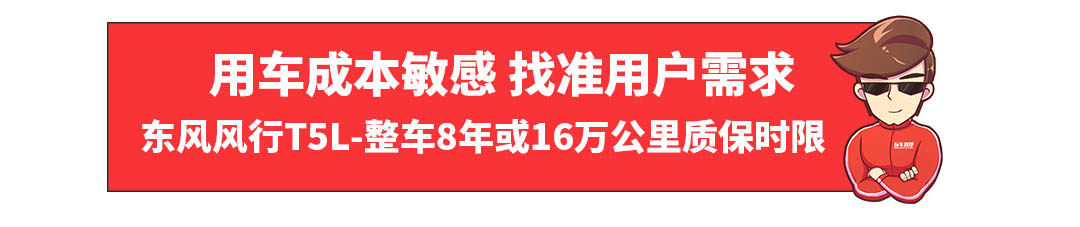 风行T5L作为一款给消费者作消费升级的选项,其面对的这些消费群体有相当一部分都会对车辆的使用成本较为敏感,东风风行为该车提供整车8年或16万公里;发动机10年或100万公里的超长质保政策或许能让这部分消费群体选择得更为放心。