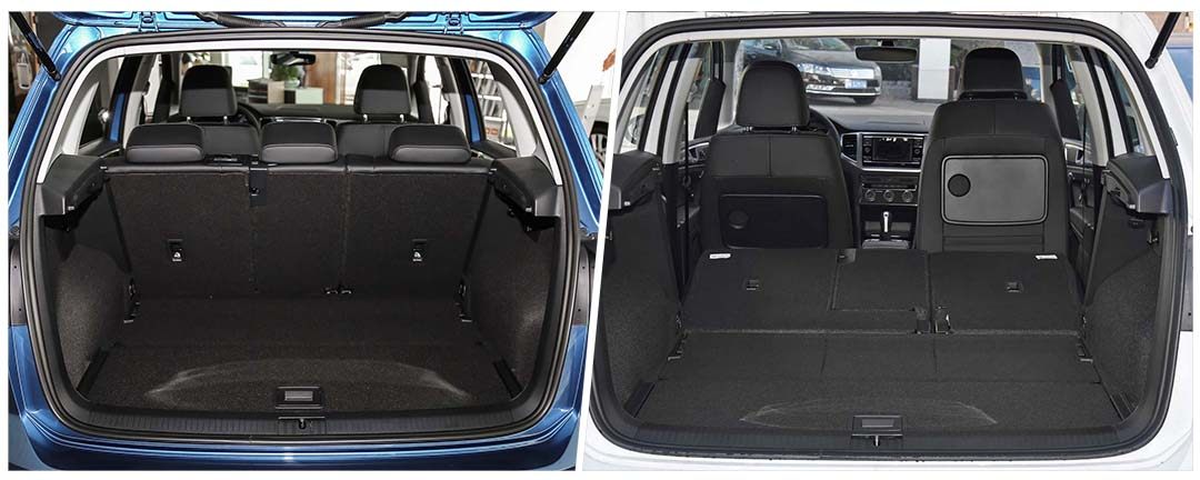 特别是当你打开后尾箱时,高尔夫·嘉旅的优势就能体现出来了。在标准状态下,深度750mm,容积500L;当第二排座椅放到的情况下,最大深度1640mm,扩展容积1520L。并且高尔夫·嘉旅后备箱做到了全平状态,使用起来也相当好用。