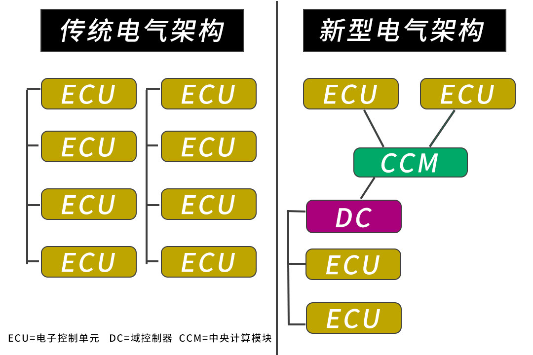 前不久,有丰田工程师感叹,特斯拉的电气架构领先了丰田、大众至少6年。汽车上目前主流的电气架构是各个零部件厂商各自为战,ECU收集和处理自己负责的零部件的信息。而特斯拉采用的是星形网络,各部件的ECU收集到信息后,将信息传递中央处理器,中央处理器收集ECU的信息后,再根据总体情况来向各零部件发出指令。前者是欧盟,后者是拥有中央政府的国家。