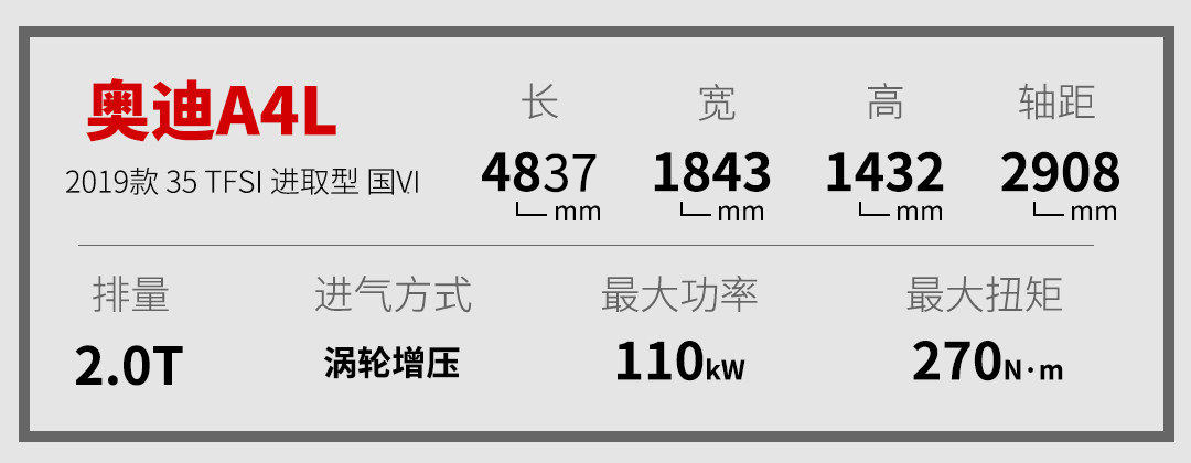 你也可以看到2.0T的发动机有150匹马力的存在。查看奥迪A4L的车型配置单,你会发现2019款 35 TFSI 国VI进取型的最大马力150匹,最大扭矩也不过270牛·米,这个数据乍看之下更像是很多1.4T发动机的参数,实际上开起来也几乎没什么动力可言。