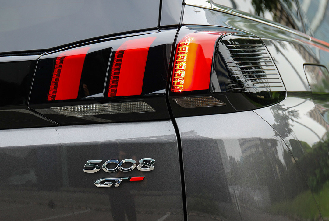 不同与这个级别的其他SUV沉稳厚重的造型,标致5008拥有独属于法系车的浪漫设计。象征赛车旗的点阵式进气格栅配合犀利的狮眼大灯,突显出旗舰级别的大气。此外车尾的尾灯采用家族化“狮爪”造型的LED灯,黑红搭配的设计科技感十足,辨识度也提高不少。