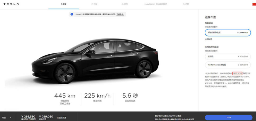 另外售价29.9万的标准续航版并没有自动驾驶功能,少了自动驾驶功能的特斯拉还能叫特斯拉吗?如果要选装这个配置要花5.6万元,差不多一辆入门级国产电动车的钱。