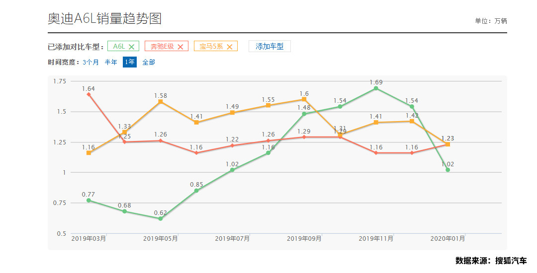 虽然车辆换代初期市场普遍0优惠的情况令A6L的销量下滑,但随着如今5万多元的优惠放出,A6L的销量在2019年后半年一路走高。其实在这个人均加长的大环境下,“E56”三款车的轴距(E级为3079mm,5系为3108mm,A6L为3024mm)并没有太大区别,但国内的豪华车消费从来都不是纯理性,是不是非要那么浓的豪华质感,或者尝试做出改变,大多数消费者最后都是会为品牌和车型优惠而买单。