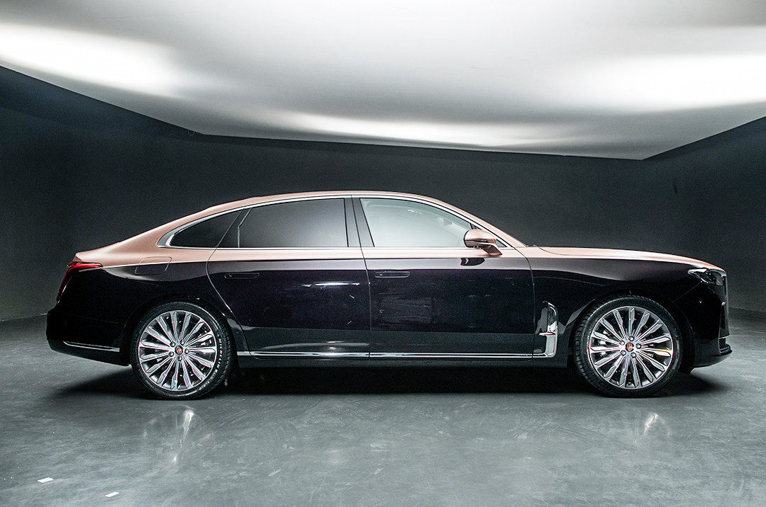 移步车侧,是前脸营造的傲世气场的延伸,亦是传统与时尚的完美交融,昂首挺胸的腰身展现出强大的气场与比肩D级车的价值感知;突破传统,创造性地将双拼色车身、溜背设计、气韵生动的曲面在一辆庄严的旗舰级轿车形成交集。