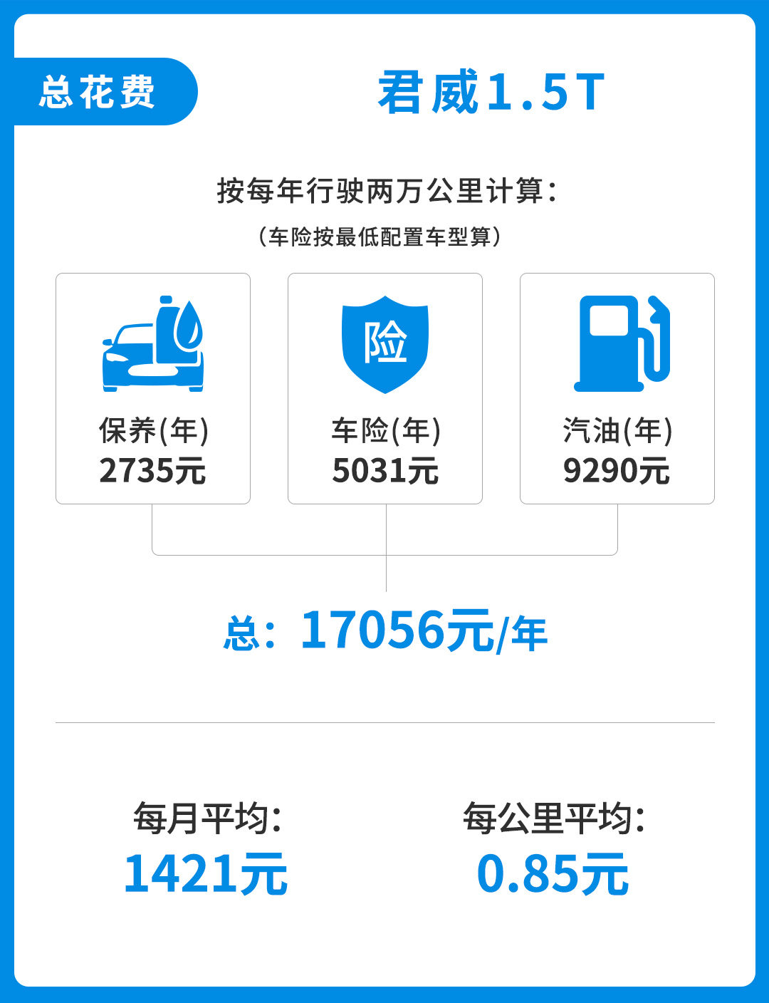 目前君威有着3.5~4万的优惠幅度,优惠后与威朗这样的紧凑型车价格非常接近,那我们今天就来分析一下优惠的价格放在养车上能用多久。