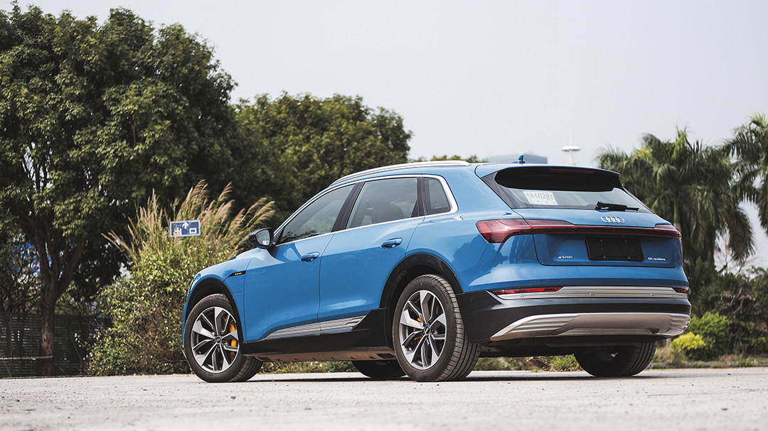 奥迪e-tron采用了高度“燃油化”的外形设计,去掉充电插口及尾部的e-tron标识,你很难会意识到它纯电动车型的身份。