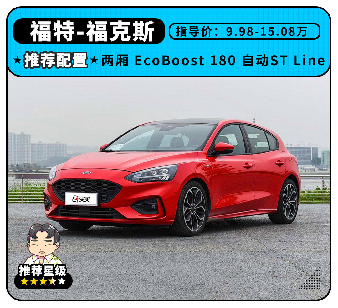 如果你是奔着运动性去购买福克斯,那除了一定要选高规格动力的1.5T涡轮增压版本外,就最好买两厢版,毕竟两厢版的福克斯不仅看起来更协调,而且还独享ST-Line运动外观套件,实在是太帅了。
