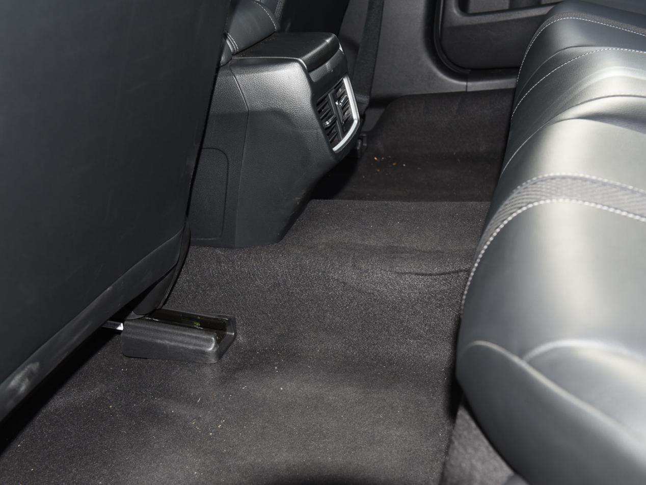 有一个细节值得留意,思域后排地台隆起的那一块比其它轿车小,这是因为思域底盘下方使用了加强件,随着扭转强度提高,地台隆起的那一块也就变小了。