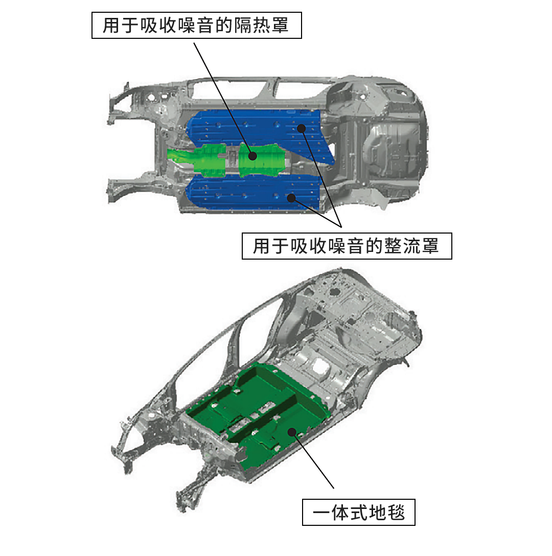 这代思域也在NVH上做了大量工作,简单说就是隔音变好了震动频率降低了,具体有哪些改进?比如底盘下方的隔热和整流罩以及车身底板一体式地毯,车身的密封设计也更好,再细一点,连副车架的结构都变了。