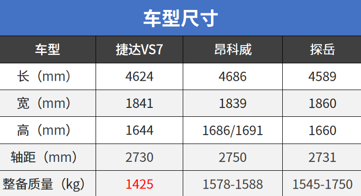 从捷达VS7的整备质量来看
