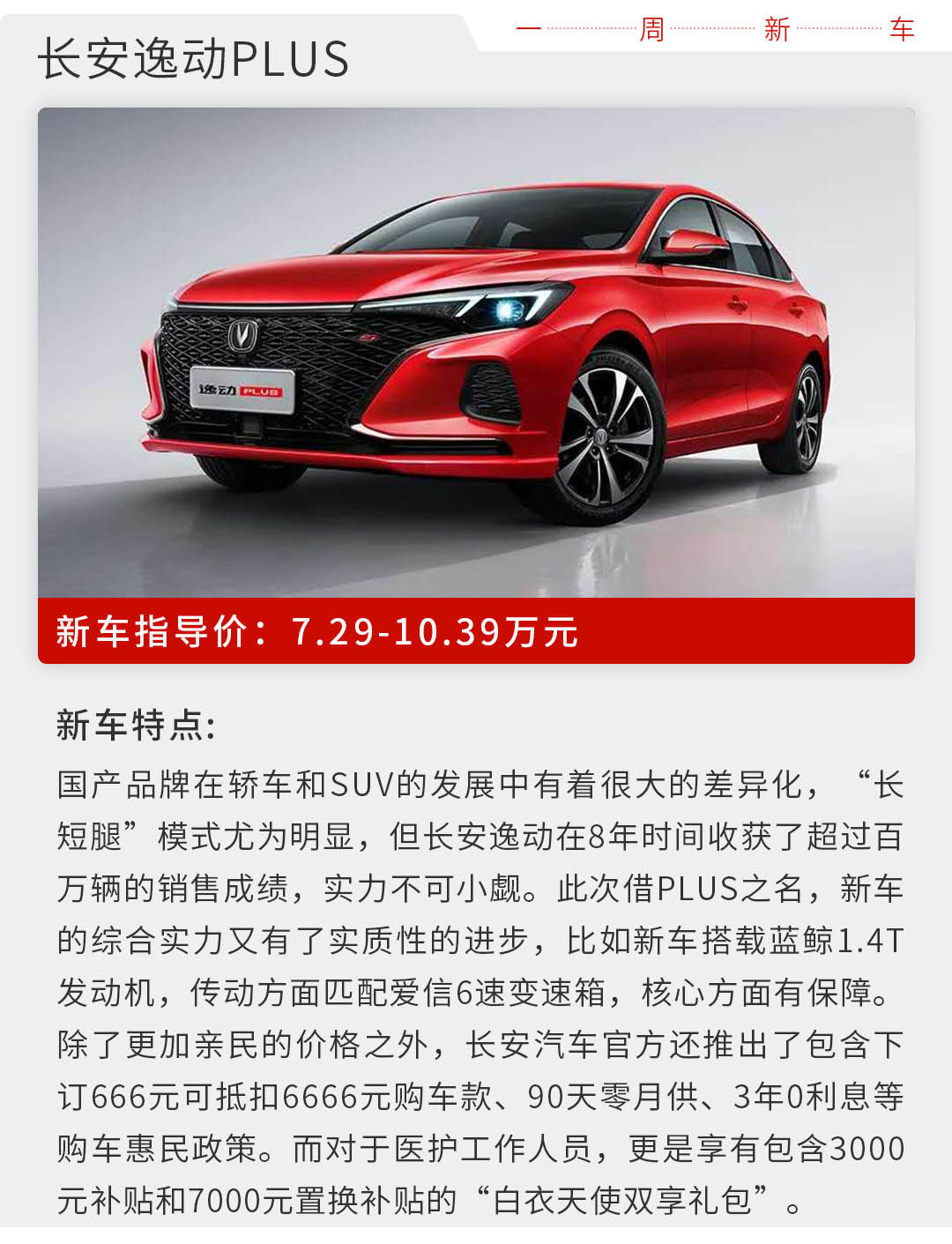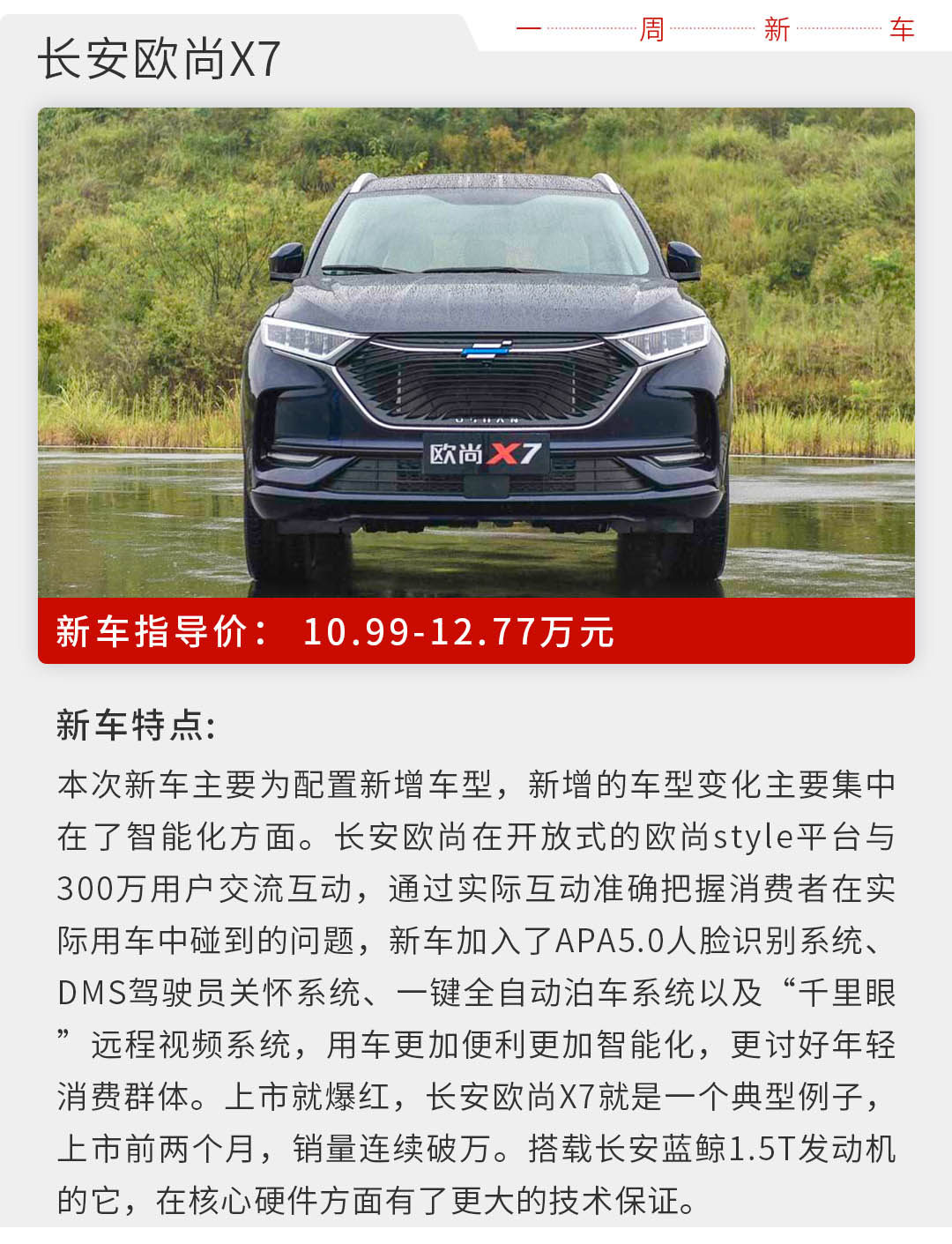 近些年来,国产汽车品牌的进步大家有目共睹,无论是市场销量确切的直观数字,还是在实际使用中的整体感受,都有了量到质的实际变化。国产品牌车型的进步,离不开背后的坚持与努力。而本周上市的新车也大多都以国产品牌为主,既有一上市就爆红的长安欧尚X7,物美价廉是最大特点;也有打拼多年,依然坚持轿车细分领域的长安汽车逸动PLUS,家用代步最为合适。
