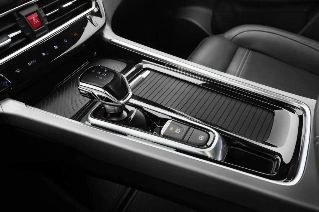 电子挡杆小巧且精致,挺有意思的,而周围的储物空间可以安放物品。不难看出,无线充电功能厂家也都安排上了,不过嘛······应该是选装配置。