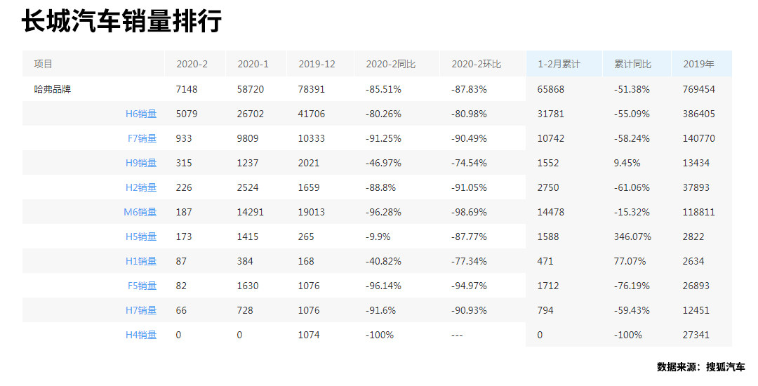 从哈弗M6的市场销量来看,旧车换新壳的策略确实是成功的。排除2月疫情对市场带来的冲击外,哈弗M6一直保持在1.5左右的高销量状态。以一月长城汽车的销量数据来看,哈弗M6是长城汽车旗下除哈弗H6以外的第二大销量板块。吃了H2和H4销量表现不达预期的亏后,哈弗明白了在三四线城市且消费水平在10万内的用户比起精致小车,更想买一款高性价比且满足家庭使用标准的SUV,而那款车型正是现在的哈弗M6。