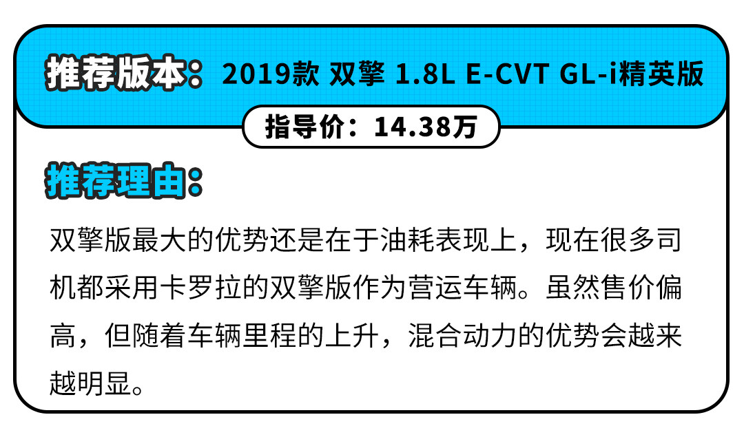 而现实是,这种陪跑策略是一丰下得非常对的一步棋。长达十年的同堂销售,为后续的十一代、十二代车型打下了非常良好的基础,花冠的口碑也被完美延续在了卡罗拉的身上,省油、耐用的特点被消费者所熟知,加上近年来双擎版的加入更是将车辆油耗进一步降低(燃油版车型油耗6.6L/100km,双擎版油耗5.2L/100km)。