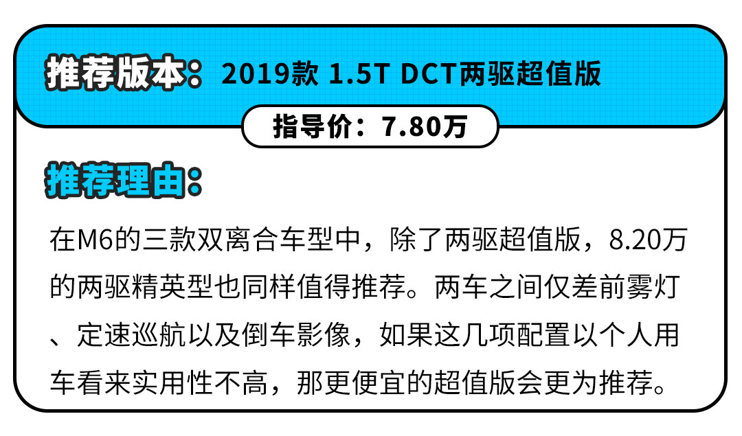 在2017年哈弗H6换代后,旧款H6摇身一变成为了全新哈弗M6,老旧的动力换个说法也能称之为成熟的动力,并且现款车型起步售价低至丧心病狂的6.6万起,降低了许多低收入家庭的购车门槛,怎能不香呢?