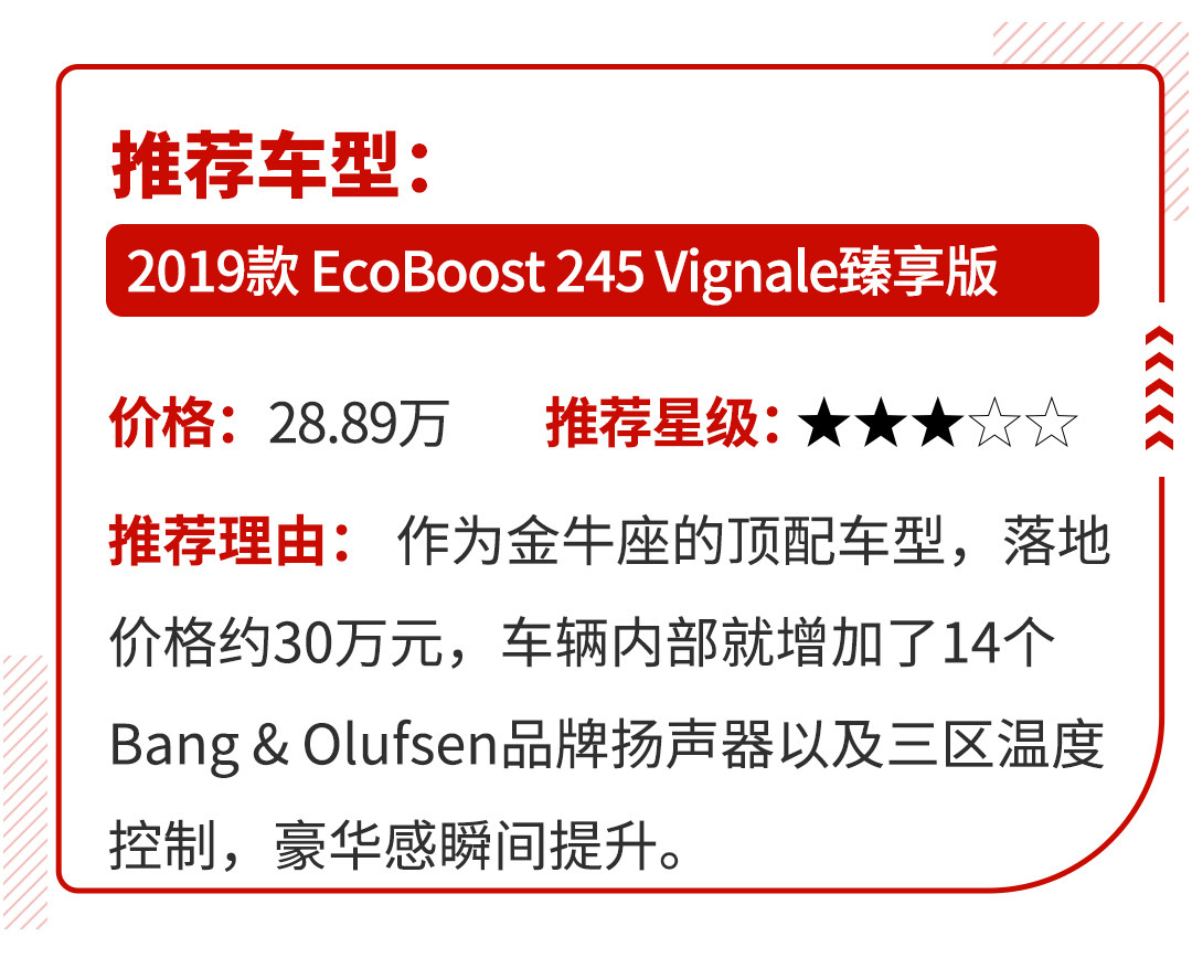 加上发动机通过减缸带来的改变,百公里油耗直接就比六缸车型减少了1.7L。而对于金牛座来说,这款10年8次入选“沃德十佳发动机”的福特EcoBoost 2.0T发动机,在技术上的深厚积淀与金牛座似乎更加搭。特别是在国内市场,福特2.0时代的反攻序曲,已经在旗下各款车型中陆续拉开序幕,至于金牛座2020年将会取得怎样的成绩,大家尽管拭目以待。