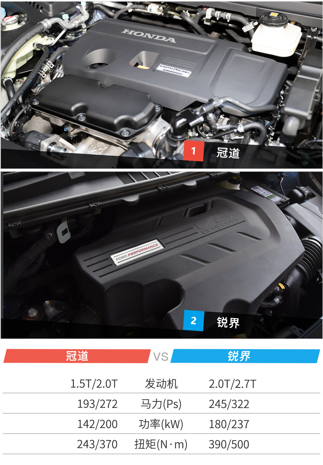 对比两款车型采用的动力,也可以看出两台车的取向:冠道采用相对正常的1.5T和2.0T动力,并且得益于本田VTEC技术,油耗在同级别是最优秀的一挡;锐界则是主打性有牌,现在少有的V6发动机,很自然地成为卖车时的一大噱头。