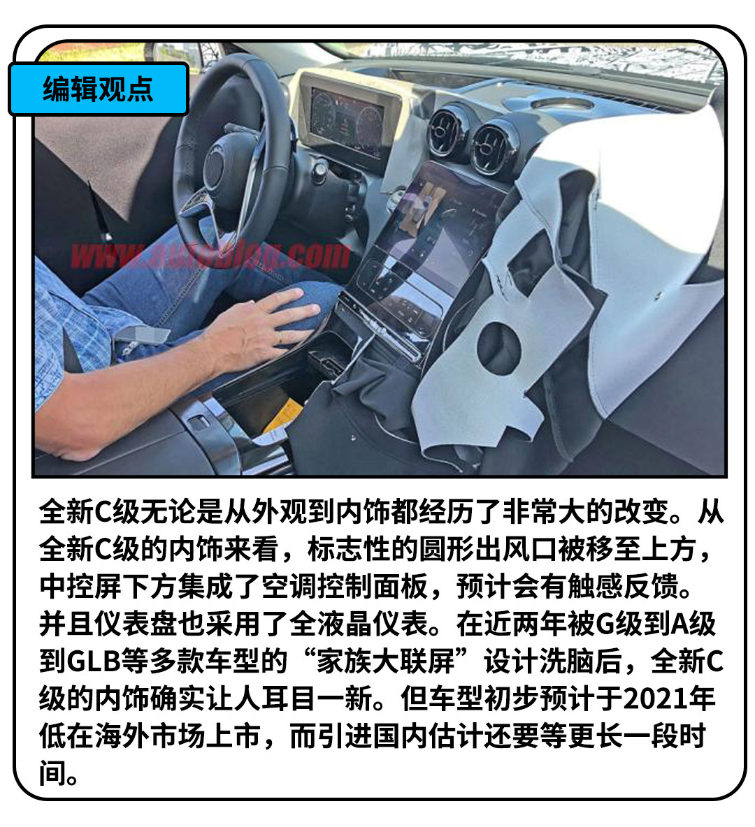 近日根据外媒报道,曝光了一组全新奔驰C级的谍照,并且从相关渠道获悉,全新C级将会在2021年率先在海外市场发布并完成上市。全新一代C级将基于MRA2后驱平台打造,预计搭载一系列四缸、六缸发动机以及混合动力系统,同时也将提供AMG版本。虽然车身尺寸与轴距与现款标轴C级保持一致,但引进国内的加长设计以及车身参数只能等进一步消息。