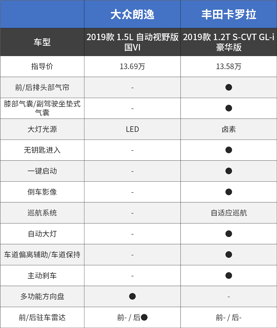 对比之下朗逸的配置优势仅仅是多了LED大灯和后雷达,作为一个标价13.69万的车,连倒车影像都不标配,德系车贵就是这么来的。