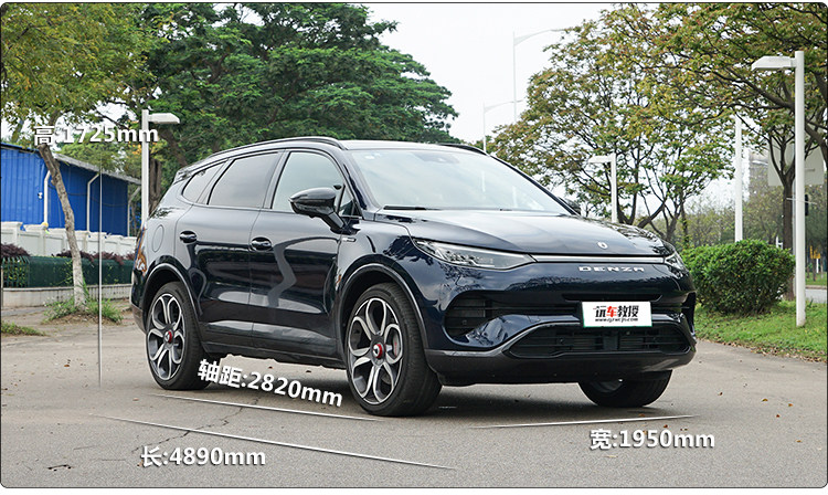 腾势X的长宽高:4890/1950/1725mm,轴距2820mm,账面尺寸数据在同级车里占不到太大的优势,但总体来讲,其账面数据在同级车算得上是位居主流,为其空间表现奠定了一定的基础。