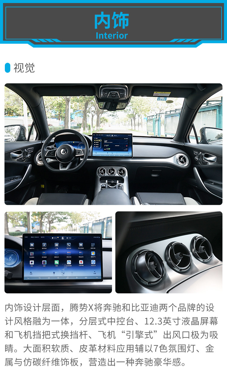 小结:腾势X成功将奔驰和比亚迪两大家的设计元素结合为一体,简约的设计风格当中透露出一股糅合了科技的古典美。