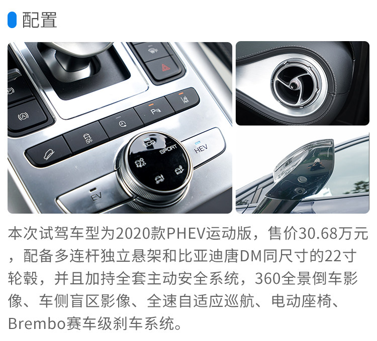 小结:总的来说,腾势X驾控感还是比较出色的,动力性能拔尖,燃油经济性出众。底盘悬架、转向调校有特色,操控性强,还有多种多样的驾驶模式可供用户挑选,唯一不足之处在于隔音降噪水平有待提升。