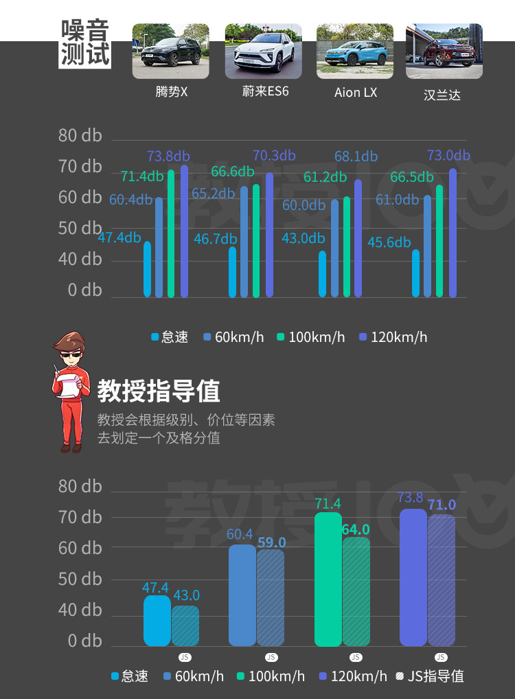 根据测试,腾势X在各个时速的噪音表现,都超出了同一级别车型的平均成绩,表现有待提升和改善。