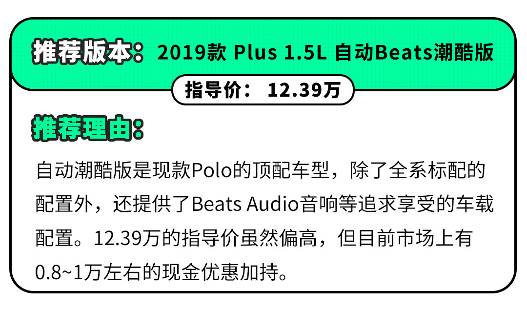 不过好在这套动力总成在大众旗下车型泛用性非常高,除开Polo外,自家的朗逸、桑塔纳,斯柯达的柯米克等都有搭载。较大的市场保有量给产品带来了养护便宜的优点,且出色的可靠性以及较低的油耗水准(6.4L/100km)也算是这套动力总成的两大加分项。