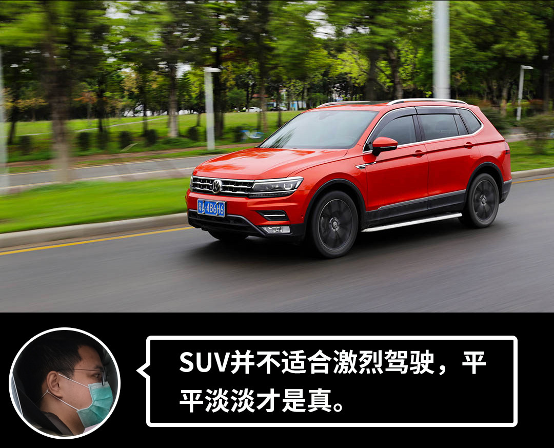 阿行:由于对于安全性的考量,SUV的悬架调校也更需要下功夫。例如途观L为了保持操控性,避免过弯时侧倾过大,因此减震悬架也会适当偏硬。并且更大的迎风面积,也让SUV在隔音静谧性上也没有优势。