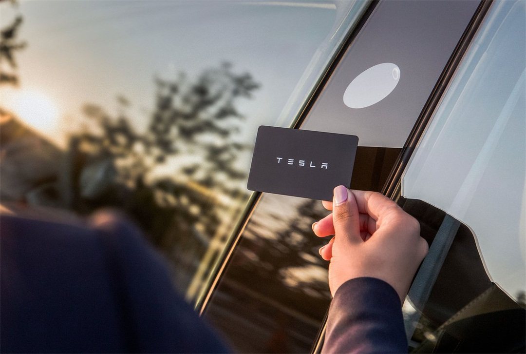 Model 3并没有像其他车型一样,配备常规的钥匙,而更像是一张门卡。轻薄的设计不仅拿着方便,看着还有逼格,其开门的方式,只需要用卡在B柱位置刷一下即可。