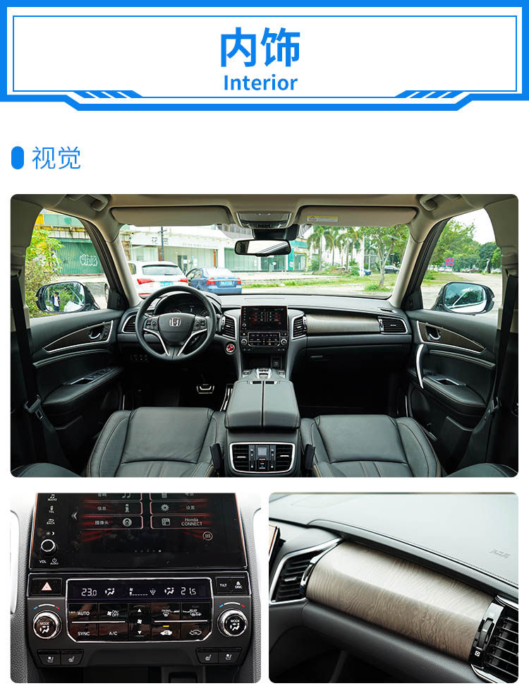 由于本次是中期改款,因此本田对于冠道内饰并没有较大的调整,冠道整体的内饰风格依然是以实用为主,无论是中控屏的布局、物理按键的设置、以及储物空间的排布,都能够带来非常不错的体验。在用料上,通过真皮包裹和木纹饰板来提升整体质感,并且新增的车内氛围灯进一步提升了内饰的档次。