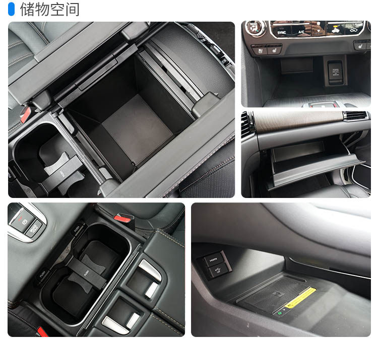 冠道的中控台下方布置了非常多储物空间方面,身上随身携带的小物品不担心没有地方放。此外,冠道的储物空间设置也是别出心裁,杯架下方还有一个小空间,杯架不用的时候可以用扶手箱的盖板移上去挡住。中控下方还有一个较大的储物空间,并且提供手机无线充电装置。因此,在储物空间方面可以打一个高分。