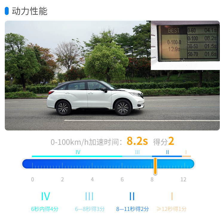 实际测试中,本田冠道零到百公里8.2s的加速时间,与官方的8s差入不大。虽然动力参数优秀,但是结合冠道的尺寸与车重来看,这个成绩也是符合正常的表现;在刹车测试中,本田冠道百公里刹停的距离为38.6m,在同级别中属于非常出色的存在。