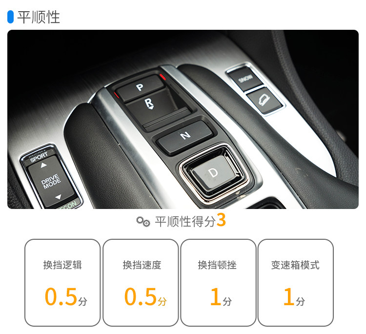只要你深踩油门的时候,冠道强大的动力才会被触发出来,9AT变速箱降挡迅速,以保证动力的输出。采埃孚供应的9AT变速箱与本田2.0T发动机的配合也是比较默契,对于驾驶员意图的理解到位,能够很好匹配动力的输出,同时也兼顾到燃油经济性。